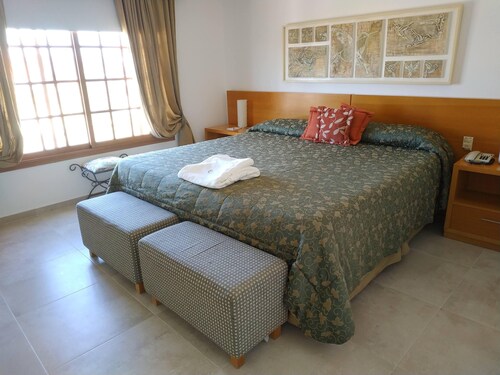 ビージャ イチョ クルスにあるこの高級ホテルは、バルネアリオ プラヤス デ オロ、コンプレホ・アエロシージャ・カルロス・パス、ラ・カサ・デ・キャスパーから 15 km 圏内です。十字架の記念碑およびヌエストラ・セニョーラ・デル・カルメン教会も 15 km 圏内です。 この禁煙のホテルには、フルサービス スパ、屋内プール、および屋外プールがあります。フル ブレックファスト (無料)、共用エリアでの WiFi (無料)、およびセルフパーキング (無料)もご利用いただけます。その他の設備には、レストラン、フィットネスクラブ (スタッフ常駐)、およびサウナがあります。