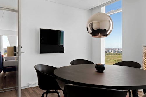 ホテルは全客室 812室で、北欧諸国内で最大のホテルといわれています。会議室、多目的ホールが28室あり、ビジネスにも最適な大型ホテルです。内部は、各客室とも白とダーク系のコントラストをメインにしたインテリアが配されており、とても洗練されたイメージです。レストランとバーが、あわせて5つ入っており、特に23階にあるスカイ・バーではその窓から市内が一望できます。特にイルミネーションが輝くコペンハーゲン市の夜景は、忘れ難い美しさです。