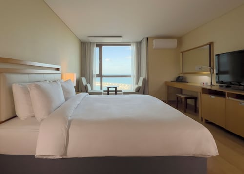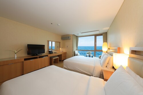 済州(チェジュ)国際空港と済州港に近くて交通が便利。海が見える素敵な景色。全客室ITサービス提供。 済州(チェジュ)国際空港からタクシーで10分。
