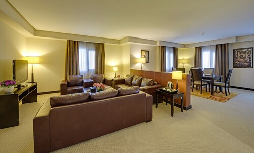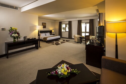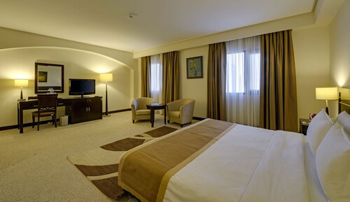 マナマ シティにあるファミリー向けのこのホテルは、空港の近くに位置し、ラ フォンテーヌ現代美術センター、コーラン館、バーレーン国立博物館から 2 km 圏内です。アル ファテフ グランド モスクおよびアル エクデイビア宮殿も 2 km 圏内です。 このホテルには、4 か所のレストラン、フルサービス スパ、および屋外プールがあります。共用エリアでの WiFi (無料)の他にバレーパーキング (無料)、ビーチシャトルサービス (無料)、およびマネジャー主催のレセプション (無料)をご利用いただけます。その他に、敷地内には ナイトクラブ、2 か所のバー / ラウンジ、および フィットネスクラブ (スタッフ常駐)があります。