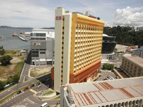 元々はオフィスビルだったのを改装して作られたガヤセンターホテル。ゴージャス感やリゾート感は一切なしの安ホテルですが、海沿いに建っていて海側のお部屋やレストランから海が見えるのがお得な気分。1階がロビーとバー、2〜3階にレストラン、会議室とスタジオルーム。このスタジオルームはクイーンサイズベッドが二つで最大4名まで泊まれます。スタンダードルームは5〜8階、スーペリアルームが9〜12階のシティビュー、デラックスルームが9〜12階のシービューのお部屋、パノラマルームが13階のお部屋です。最上階の14階にはジュニアスイート、エグゼクティブスイート、ロイヤルスイート。これらの中でバスタブ付きのお部屋はエグゼクティブスイートとロイヤルスイートのみです。ホテルの目の前は海で、右隣にはショッピングセンター「スリアサバ」、左隣にはレートのいい両替屋さんが集まる「ウィスマムルデカ」、裏は旅行会社の集まる「ウィスマサバ」という便利な場所にあります。