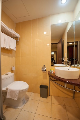 1階がロビーとバー、2〜3階にレストラン、会議室とスタジオルーム。このスタジオルームはクイーンサイズベッドが二つで最大4名まで泊まれます。スタンダードルームは5〜8階、スーペリアルームが9〜12階のシティビュー、デラックスルームが9〜12階のシービューのお部屋、パノラマルームが13階のお部屋です。最上階の14階にはジュニアスイート、エグゼクティブスイート、ロイヤルスイート。これらの中でバスタブ付きのお部屋はエグゼクティブスイートとロイヤルスイートのみです。