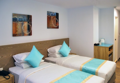 パラオで一番発展しているコロール州ダウンタウンのメインストリート沿いにあるホテルです。パラオ人から聞いたところによると、数年前にホテルのオーナーが日系パラオ人から中国系に代わった時に、ホテルの内外がリニューアルされたそうです。昔は少し古めかしい雰囲気でしたが、今は南国らしい雰囲気の明るいホテルになりました。料金は部屋のランクや時期によりますが、セミダブルの部屋で1泊100ドル程度でした。フロントはアジア系の人がいて、英語が通じます。1階のロビーのみ無料WiFiが使えます。パラオはそもそも通信状況がそれほどよくないので、混んでいる時は少し通信が遅いかもしれません。また、ロビーではコーヒーやジュースが飲み放題です。朝食のバイキングはそれほど種類は多くないですが、十分満足できます。リニューアルされてから客室は青系の淡いトーンで統一されて、部屋内も綺麗に整理されているので快適です。ただ、鍵穴の位置が悪く、少し開け閉めしにくいですが。また、壁が少し薄いので廊下の声が結構聞こえてきます。バスルームやトイレは綺麗にされており、アメニティも充実しています。ダウンタウンの中心に位置しているので、近くにはモグモグ・鳥鳥・ター