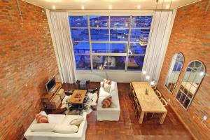 壁はむき出しのレンガでアットホームさが感じられ、家具、レイアウト、ライトはモダンな都市を感じさせます。