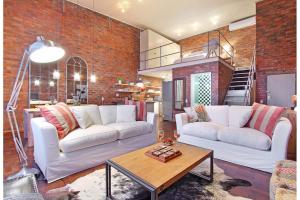 ニューヨーク式のロフトアパートメントとのことで、ロフトにキングサイズのベッド、ロフトから見下ろす広々としたラウンジにカウチ、テーブル、テレビがあります。