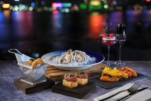 18階にあるオイスター&ワインバーは香港でも有名なレストランでヴィクトリアハーバーを眺めながら