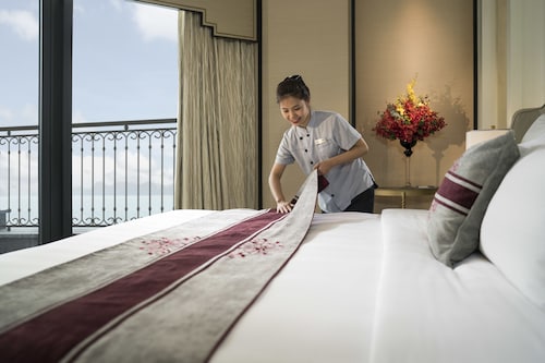 【Wi-Fi客室無料】 当ホテルは、ハロン湾にあるプライベートアイランドレウ島に位置しています。 最寄りの空港のカットビ国際空港からホテルまで、42分の距離です。 当リゾートでは、プライベートビーチやスパ、屋外のスイミングプール、テニスコート、フィットネスセンターをご利用できます。 エアコン、バルコニー、薄型ケーブルテレビ、セーフティボックス、ミニバー、専用バスルーム(バスタブ、シャワー、ヘアドライヤー、無料バスアメニティ付)を完備しております。 旧 VINPEARL HA LONG BAY RESORT & VILLAS(ヴィンパール ハーロング ベイ リゾート & ヴィラズ)