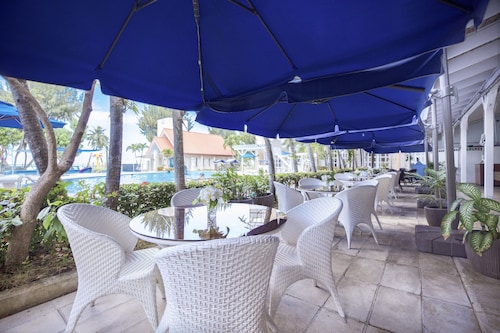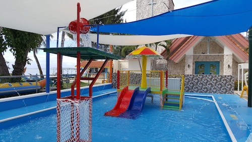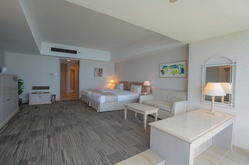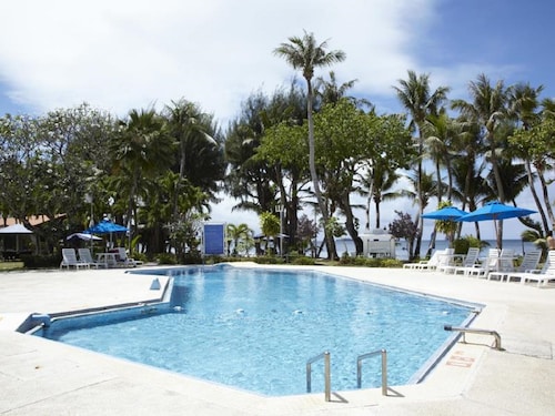 サイパンNo. 1の高層タワーを有する、3棟合計429室の大型リゾートホテルです。 場所はガラパン・DFS前の好立地。 しかも、中庭には大小3つのプールがあり、そこから一歩踏み出せば白砂のマイクロビーチ。 夜にはポリネシアンダンスショーや格安のBBQも楽しめ、南国ムードに包まれます。 ルームサービスなどを必要最低限に抑えてあることで、エコノミーな料金体系を実現しています。 空港からクルマで約20分。場所はガラパンのDFSの目の前、とサイパンでは最も好立地に建つホテルです。 隣には大型スーパーマーケット「ハファダイショッピングセンター」があり、人気のABCストアもすぐそこ。 繁華街のすべてを徒歩で回ることができ、女性だけでの夜の散歩もこのエリアなら心配いりません。 本館ツインルームは26平方メートルにシングル×2、クリスタルームのスタンダードは32平方メートルにセミダブル×2、 ダカタワーのスタンダードは40平方メートル以上でトイレが独立した造りになっています。 クリスタルタワーとタガタワーの高層階はサイパンNo.1の眺望。 調度品などはクラスによって変わりますが、落ち着いた雰囲気のデザインです。 24時間オープンのフロントには日本人スタッフがいるので言葉の心配はありません。 館内には大小プールが3つ、カフェ、和・洋食レストラン、BBQガーデン、プールバー、カラオケBOX、スパ…と施設が整っており、しかも、いずれも価格が驚くほどリーズナブル。 スタッフも朗らかで、気持ちよく滞在できます。 Wi-Fiは無料ですがお部屋によっては届かないところもあります。 ホテルの規模や施設の充実度からすると、かなりコスパは高いと思います。 しかも、館内での食事代金、お買い物も徒歩で行けることを考えると、さらに評価できます。 バスタブがあり、ハンドシャワーがついたバスルームは、タガタワー以外はトイレと同室ですが清潔に保たれています。 また、アメニティは、歯ブラシ、シャンプー、リンス、石鹸といった一般的なものは用意されています。