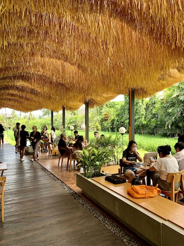 車で約90分。ウブド地区の中心街ハノマン通りに面している便利なロケーションです。周りにはコンビニからかわいい雑貨店、カフェなどあり、ウブドをじっくり散策したい派に向いてます。夜も周りは明るく治安もいいといわれている場所なので、周辺を一人で歩いてもさほど心配ありません。