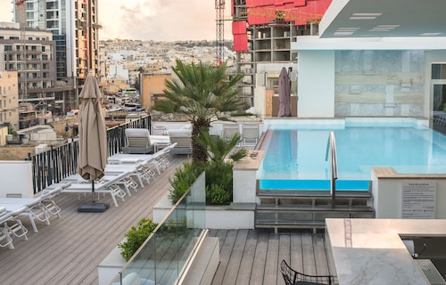 セントジュリアンの中心地から徒歩5分程、いくつかの4つ星ホテルが立ち並ぶホテル街の1角にあるこじんまりとしたブティックホテルでこちらは3つ星となっています。