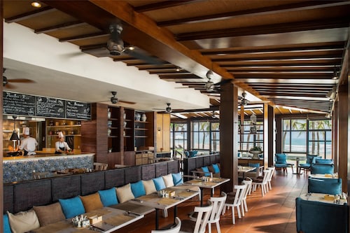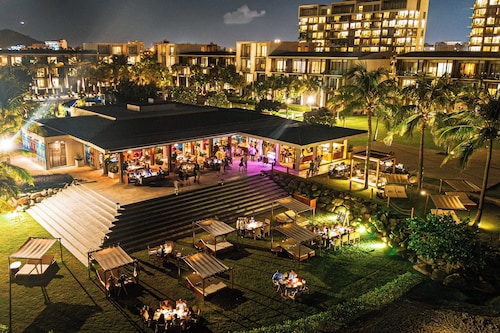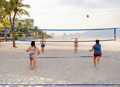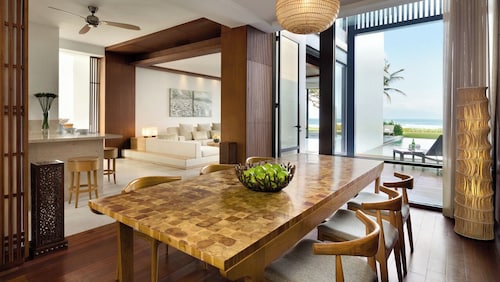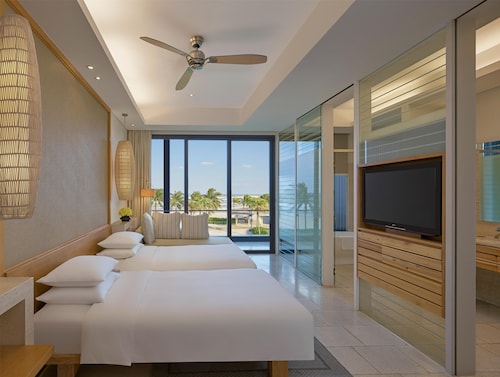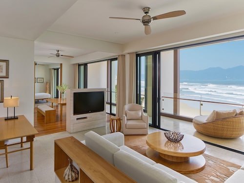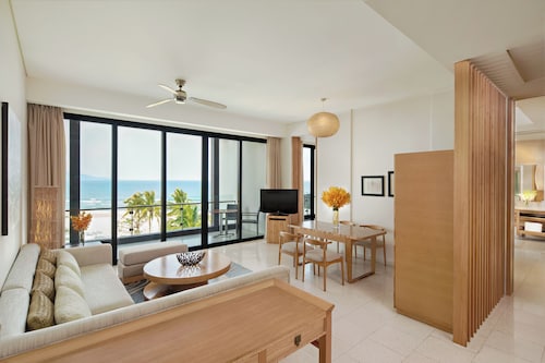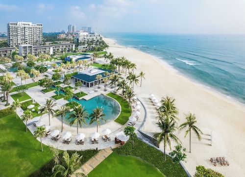 低層のホテル棟と高層のレジデンス棟が海向きにレイアウトされたスタイリッシュなリゾート。ロビーから見えるリゾートの全景とその先に広がる海の景色は格別です。広々としたメインロビーに吹き抜けていく風と南シナ海が出迎えてくれ、エントランス側を見れば五行山の姿もみられます。 白を基調にしたシンプル&モダンな客室は最低でも42㎡。全室に備わるバルコニーからの眺めは格別。特に南シナ海から昇る朝日は感動です。バルコニーにはテーブルセットとラウンド型デイベッドがあり、海風に吹かれながらのんびり読書をする時間も贅沢です。 オープン以来、定評のあるスパでイチ押しのメニューは、フォーハンドのシグネチャーセラピー(60分・2,630,000VND《約1万3千円》)。浄化作用があるとされるアガーウッドオイルで頭からつま先まで全身をやさしく揉みほぐし、凝っている部分は親指の圧でしっかりほぐしてくれます。 レストランは4つあり、それぞれ雰囲気は違うので長い滞在でも飽きることはないでしょう。 キャンプハイアットというキッズクラブは、1時間US5ドルでランチ付き。フェイスペインティングやトレジャーハントなど20以上のアクティビティを用意してる他にスイミングレッスン(1時間US7ドル)もあります。子供をキッズクラブで遊ばせている間に夫婦でスパを受けるゲストも多くいます。