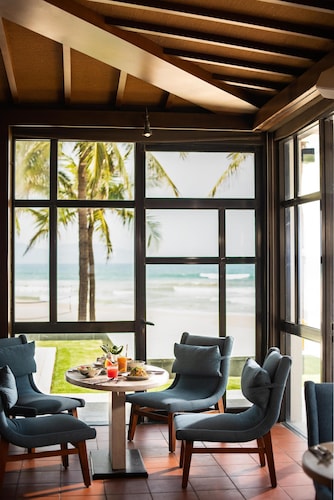 低層のホテル棟と高層のレジデンス棟が海向きにレイアウトされたスタイリッシュなリゾート。ロビーから見えるリゾートの全景とその先に広がる海の景色は格別です。広々としたメインロビーに吹き抜けていく風と南シナ海が出迎えてくれ、エントランス側を見れば五行山の姿もみられます。白を基調にしたシンプル&モダンな客室は最低でも42㎡。全室に備わるバルコニーからの眺めは格別。特に南シナ海から昇る朝日は感動です。バルコニーにはテーブルセットとラウンド型デイベッドがあり、海風に吹かれながらのんびり読書をする時間も贅沢です。オープン以来、定評のあるスパでイチ押しのメニューは、フォーハンドのシグネチャーセラピー(60分・2,630,000VND《約1万3千円》)。浄化作用があるとされるアガーウッドオイルで頭からつま先まで全身をやさしく揉みほぐし、凝っている部分は親指の圧でしっかりほぐしてくれます。レストランは4つあり、それぞれ雰囲気は違うので長い滞在でも飽きることはないでしょう。キャンプハイアットというキッズクラブは、1時間US5ドルでランチ付き。フェイスペインティングやトレジャーハントなど20以上のアクティビティを用意してる他にス