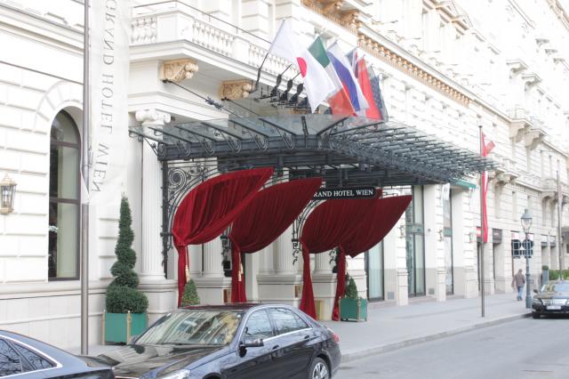 2015年、150周年を迎えるリング通りと時をほぼ同じくして1870年にオープンしたグランドホテル。世界遺産の旧市街1区内にあり、オペラ座と楽友協会の間という立地で、オペラやコンサートに通う方々にも人気のホテルです。オペラ座、楽友協会、どちらに行くにもホテルからは徒歩3分ほど。このホテルは1870年に建設後、戦後占領されたり、IAEAの本部となっていた期間もありましたが1989年からはANA Grand Hotelとして再開され、1994年に改装後の再オープンを経て今に至っています。豪華なロビーとその上のフロアにはカフェ、レストラン、シガーバーが設けられ宿泊客ではなくても素敵な雰囲気の中、ゆったりとした時を楽しむ事が出来ます。またホテル7階にはフレンチレストランと日本レストランがあり、本格和食を楽しむ事が出来ます。ランチ時にはお得なランチメニューもあり。また2008年からは地上階にガラス張りのUnkai SushiもOpen。気軽に和食をいただける場所として親しまれています。3月から10月はカフェテラス席も設置され、気持ちいい季節を満喫出来る場所となっています。部屋は3カテゴリーの149部屋、スイートルー