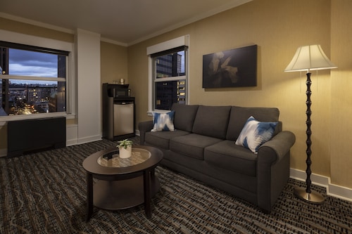 ロビーではもちろん、部屋でもWi-Fiが無料で使え(シアトルでは有料になっているホテルも多い)、毎晩夕方5時から6時までロビーでワインが振る舞われるのも喜ばれています。