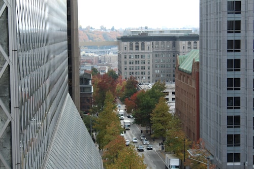 歴史ある建物の中にあるヨーロピアンスタイルのホテル。ヨーロピアン、といってもカジュアル志向で、ロビーにゲストが自由に食べられる地元ワシントン州産のりんごが置いてあったり(ワシントンは全米1のりんごの産地)スタッフのサービスもフレンドリーです。ダウンタウンの南側という便利なロケーションにあって、お隣はNY初のヒップなホテル『Wシアトル』。それでいて価格は低めなので「ロケーション重視、でも予算は抑えたい」という人にもってこい。建物は古いものの、リノベーションされているので快適に過ごせるし、部屋も決して広くはありませんが、コーヒーメーカーからバスローブまで滞在に必要なものが機能的に揃っています。ロビーではもちろん、部屋でもWi-Fiが無料で使え(シアトルでは有料になっているホテルも多い)、毎晩夕方5時から6時までロビーでワインが振る舞われるのも喜ばれています。