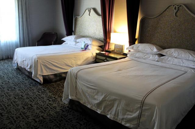 館内のプールが見えるジム・フィットネス施設も利用でき、室内ではテレビ 、電話 、無線インターネット、冷蔵庫、ドライヤー、石鹸、シャンプー、コンディショナー、タオルがあります。お部屋タイプによっても異なるとは思いますが、十分といっていいほどの広さです。