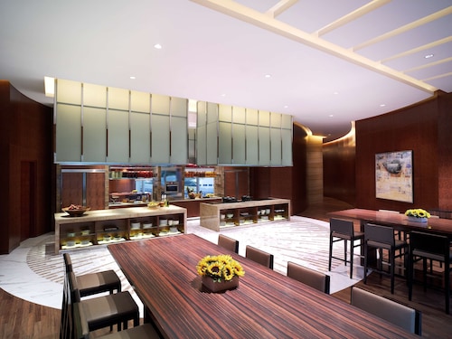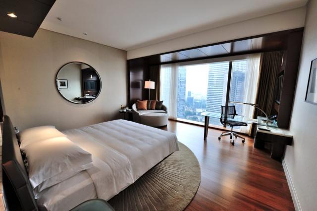 グランドハイアット・クアラルンプールは2012年に開業したスーパーデラックスホテルです。KLCC地区に位置し、ペトロナスツインタワーやショッピングセンター「スリアKLCC」まで徒歩5分程度で行ける立地の良さも魅力です。屋根つきの歩道「ウォークウェイ」(6時~23時まで通行可能)を使えばブキビンタンへも徒歩12分ほどで出られます。LRTのKLCC駅までは徒歩10分、KLモノレールのラジャチュラン駅へはスカイウォーク経由で徒歩15分ほどです。ホテルに到着したら、グランドフロアーからエレベーターに乗り最上階の39階まで昇ってください。チェックインを行うカウンターはここにあります。全面ガラス張りでペトロナスツインタワーを始め、クアラルンプールの街を見渡せる開放的なロビーに驚かされます。日本人スタッフはおりませんので、対応は英語が基本となります。1つ下の38階には、人気のレストラン「サーティーエイト」があります。このホテルに宿泊してのお楽しみは、このレストランで、すばらしい眺望を楽しみながら朝食をとることです。料理の品ぞろえ、質ともに朝食とは思えないほどのレベルで、ちょっと早起きしてゆっくり朝食を食べてください。客