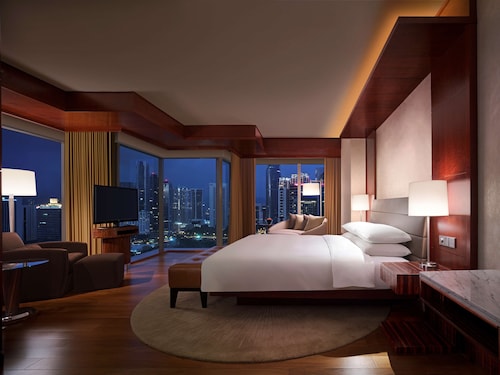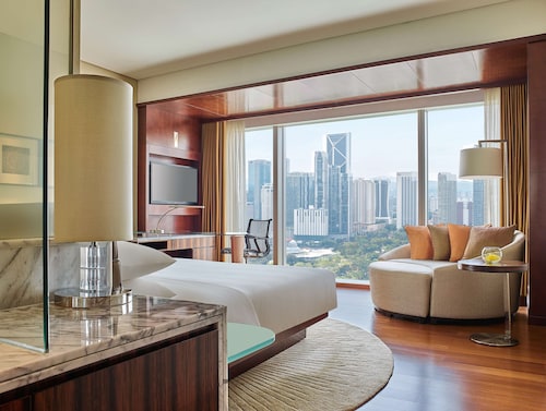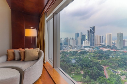 グランドハイアット・クアラルンプールは2012年に開業したスーパーデラックスホテルです。KLCC地区に位置し、ペトロナスツインタワーやショッピングセンター「スリアKLCC」まで徒歩5分程度で行ける立地の良さも魅力です。屋根つきの歩道「ウォークウェイ」(6時~23時まで通行可能)を使えばブキビンタンへも徒歩12分ほどで出られます。LRTのKLCC駅までは徒歩10分、KLモノレールのラジャチュラン駅へはスカイウォーク経由で徒歩15分ほどです。