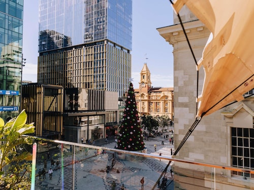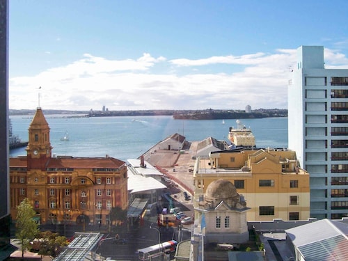 何と言ってもこのホテルのお勧めは、レストランが最上階にあり、そのレストランからの景色です。オークランド港を含む海の景色が一望できます。反対側には高層ビルとスカイタワーが迫るような迫力で見られます。宿泊していない人でもレストランは使えるのでここでの食事はお勧めです。オークランドの交通機関のかなめ、ブリトマート駅、市内バス、長距離バスのNaked Bus、空港シャトルバスの発着場、フェリービルディングのすぐ近くに位置するので、どこに行くにも便利です。港に近いのと、メインストリートに面しているので、騒音が気になるかもしれませんが、それを差し引いても上階のハーバービューの部屋からの景色は価値があります。上階の部屋というのは他のビルなどで音がさえぎられないので、街全体の音が聞こえてしまう感じです。ただし、ホテルもその辺は考慮しているようで、防音用の窓ガラスが付いているのでそれほど気になりません。車で行く人に注意!入り口の前は公共道路で、ホテル専用の駐車スペースが無いのでチェックインする際に車の停車スペースに困る場合があります。したがって、一時的にバス停のスペースに停めてポーターを呼びに行って荷物の積み下ろしや車の移