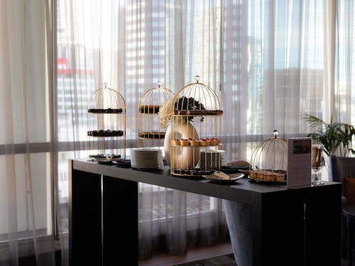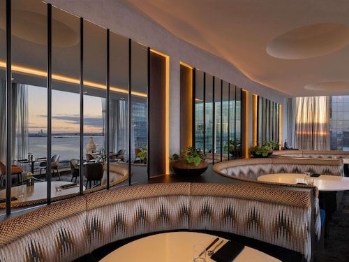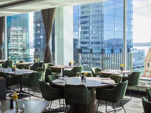 オークランド港を含む海の景色が一望できます。反対側には高層ビルとスカイタワーが迫るような迫力で見られます。宿泊していない人でもレストランは使えるのでここでの食事はお勧めです。