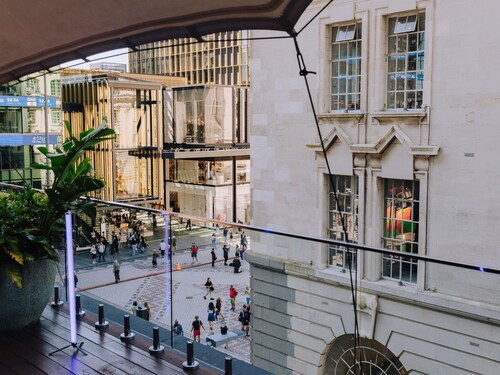 オークランドの交通機関のかなめ、ブリトマート駅、市内バス、長距離バスのNaked Bus、空港シャトルバスの発着場、フェリービルディングのすぐ近くに位置するので、どこに行くにも便利です。