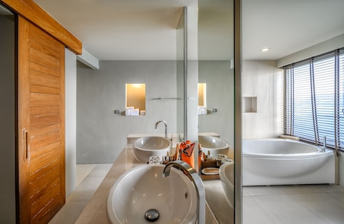 デュウプレックスプールヴィラのバスルームは、2階にあります。