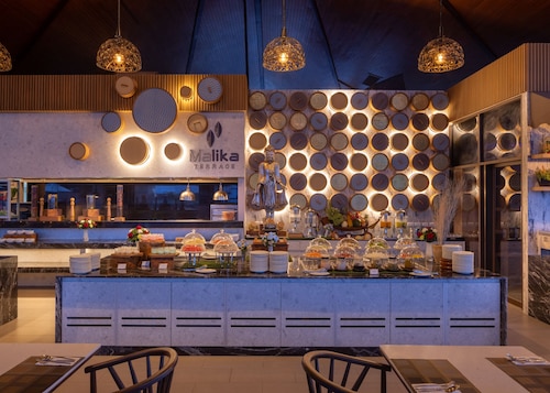 こちらのホテルは、ホテル内の至る所からカリムビーチやサンセットが一望出来、パトンのように周りにバーがあったり、ディスコがあったりというのがないので、静かにのんびりホテルで過ごされたい方にお勧めです。さすが、5つ星ということもあり、ホテル内のレストランの料金も値段は高めになっておりますが、値段などは気にせずに贅沢に過ごしたいという方にお勧めです。パトンビーチの隣のカリムビーチの丘に新しく出来たこちらのホテルは、パトンビーチから車で10分弱になります。ただ、丘の上にある為一部階段を登り降りしないといけないところもありますので、お年寄りの方や小さいお子様連れのお客様には不便かもしれません。客室のダブルハネムーンスイートは、全部で12部屋あり広さは65㎡あります。キングサイズのベットとゆったりと寛げるソファスペースがあり、外に出るとプライベートのジャグジーと同部屋タイプと共有のプールがあり、プールからはカリムビーチが一望出来ます。このダブルハネムーンスイートのバスルームには、バスタブがなくシャワーも固定のシャワーのみでした。トイレとシャワーは分かれていました。洗面台は広々としており、タオルもバスタオル&フェイスタ