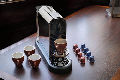 建物は、1972年に建てたらもので、ユニオンスクエア近辺では比較的新しくモダンな作りです。クラウンプラザからホテル480に名前が変わって、2009年4月に今のマリオットユニオンスクエアになりました。客室は、400室あり、そのうち53室がスイートルームです。スタンダードのお部屋には冷蔵庫がないので、各階に製氷機があり、部屋に常備されている氷入れの容器に氷を入れて飲み物を冷やすことができます。