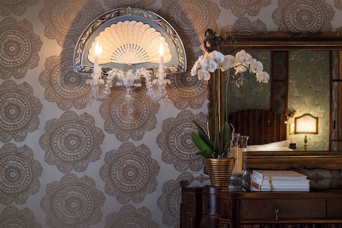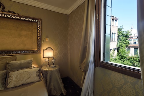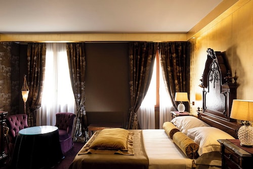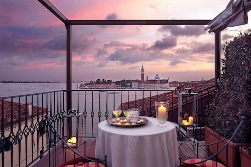 サンマルコ広場の近く、大運河に面したスキアヴォーニ河岸沿いに建つ5つ星デラックスホテル。建物は1500年代の歴史あるもので、かつてはベネチア出身の作曲家ヴィヴァルディも住んでいたことがあり、日本でも音楽の授業でおなじみの「四季」は、ここで作曲されました。館内の通路のあちこちに、このホテルのオーナーのコレクションである、2000点以上ものアンティークの扇子、バッグ、小物入れ、コークスクリュー、キリストの磔刑像等が展示されており、アンティーク好きの方にとってはたまらない空間となっています。おしゃれなおつまみを食べながら食前酒やカクテルが飲めるバーや、ミシュラン1つ星を獲得したレストランもあります。客室は全部で67室、クラシック、ファミリールーム、デラックス、ジュニア・スイート、屋上テラス付のスイート、スイート、エグゼクティブ・スイートのカテゴリーがあります。客室ごとに間取りやインテリアが異なるものの、各室にはオリエンタル調やアールデコ調の家具が備え付けられ、ファブリック類はベネチアの最高級メーカーのものを使用しています。★客室設備: 無料Wi-Fi、ミニバー、エアコン、バスローブ、スリッパ、無料バスアメニティ
