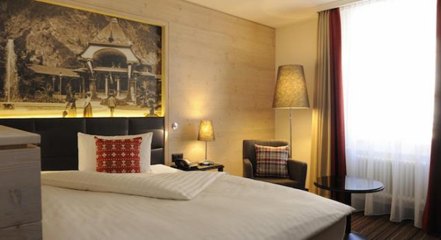 近くにコングレスセンターがある関係でシングルルームもあり、ダブルの1人使用で高くつくスイスでは重宝するかも。