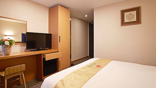 明洞の繁華街に位置し、地下鉄4号線明洞駅まで徒歩3分の距離。大通りに面していないのでタクシーでビルの前までとは行きませんのでご注意。明洞でショッピングをして途中で荷物をおいて、また出かけることもできるし、夜遅くまで遊んでも問題なし。とにかくこの界隈で遊ぶには持って来いのホテルです。