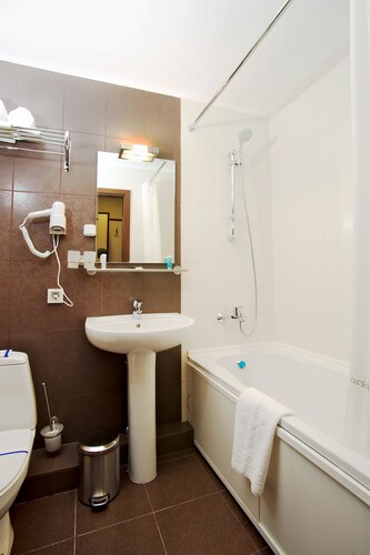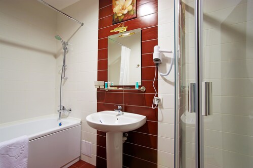 ザポリージャ中心部に位置するこのホテルは、ザポリージャ ヒストリー ミュージアムから 0.2 km、ミュージアム オブ ウェポンズおよびザポリズヒア シティ チルドレン ボタニカル ガーデンから 5 km 圏内です。ザポリージャ リージョナル アート ミュージアムおよびボズネセンスキー公園も 10 km 圏内です。 レストラン、バー / ラウンジ、およびセルフパーキング (有料)がある禁煙のホテルです。共用エリアでの WiFiは無料です。 その他に、敷地内には24 時間対応のルームサービス、ビジネスセンター、および会議スペースがあります。 この客室の 109 室ある防音仕様の客室にはWiFi (無料)および24 時間対応のルームサービスが備わっています。快適な滞在を約束するバスローブおよびスリッパのほかに、個別の浴槽とシャワーならびに液晶テレビも備わっています。