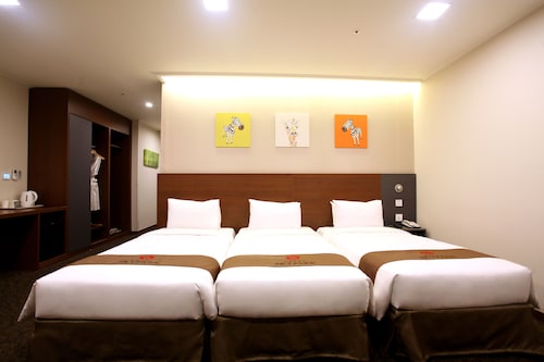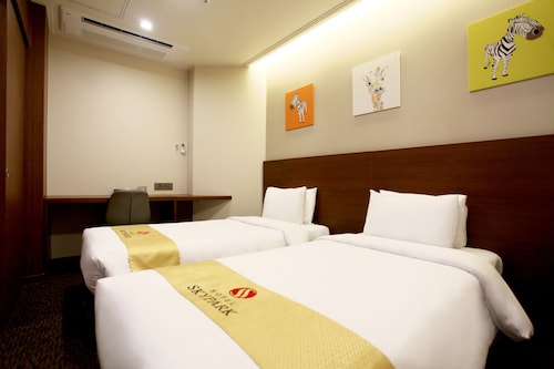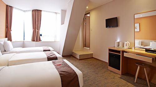 明洞聖堂が見える客室もあり、比較的静かなロケーションです。アクセスの良さに加え、客室全室にバスタブ、温水洗浄便座、空気清浄機、インターネットが完備されているほか各階に浄水器と製氷器があり設備も充実しています。また無料で利用できる館内施設も大きな魅力です。地下鉄2号線乙支路入口(ウルジロ イック)駅や空港リムジンバスの停留所まで徒歩5分以内。また、コスメ、ファッション、エステ、グルメを徒歩圏内で楽しめる便利な立地です。シャトルバス3方面(ソウル駅行、東大門行、新羅免税店行)があるので行動範囲が広がりますね。客室はツイン、ダブルルームの他、3人用、4人用の部屋がありますので家族旅行や友人同士でも利用しやすいです。新しいホテルですので綺麗ですし、女性専用フロアや禁煙室もありますのでリクエストしてみてはいかがでしょうか。しかし、部屋の広さは広いとはいえません。歯磨きセットもありませんのでご用意いただいたほうが良いですね。日本語対応のスタッフが常駐しており親切に対応してくれるので韓国語がわからずとも不便はないでしょう。女性専用フロア、禁煙・喫煙フロアを選択できます。また、各階に浄水器と製氷器、地下2階には、パソコン