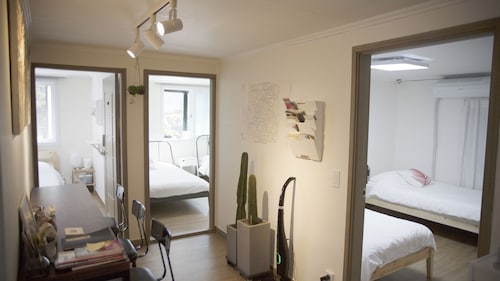ホンデに位置するこのゲストハウスは、弘益大学校から 0.6 km、南大門市場から 4.7 km です。弘大 通りおよび延世大学も 15 分圏内です。西江大駅まで徒歩 7 分、地下鉄 新村駅まで徒歩 8 分です。 ルーフトップテラスのほか、この禁煙のゲストハウスには共用エリアの電子レンジおよび共用エリアの冷蔵庫があります。共用エリアでの WiFiは無料です。 その他の設備には、エクスプレス チェックイン、エクスプレス チェックアウト、およびバーベキューグリルがあります。 バスルームは共用です。また、客室清掃は行われません。