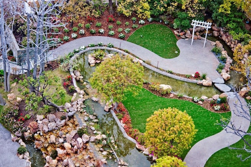 リトル東京に二つあるホテルのなかでは、客室の多いホテルになります。元は日系のニューオータニホテル。現在では日系ではないので日本人スタッフは常駐していないのですが、日本の風情がそこかしこに残っています。屋上には日本庭園もあります。室内はややこじんまりしていますがベッドが高く、落ち着いた色の調度品でまとめられています。一階にスターバックスあり。リトル東京のど真ん中ですので、食事やちょっとした身の回りのものの買い物には困らないのでおすすめです。日系のスーパーや、日本食のお店も多く、日本の雑誌や漫画が手に入る本屋まで揃います。434室。駐車料金1日$30~36。