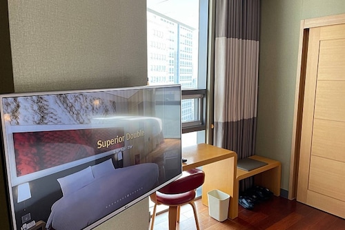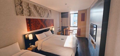 釜山の中心地である西面に位置するという便利な立地条件と、かの有名なアンバサダーグループクオリティでありながらリーズナブルな価格帯から、ビジネス、観光のどちらにも最適なホテルです。同じく釜山の海雲台(ヘウンデ)地区に位置する一流ホテル「ノボテルアンバサダーホテル」なども同系列。アンバサダーグループのどちらにも共通する清潔感や一定以上のサービスレベルが、いつも利用者に安心感を与えてくれます。ホテルの最上階(17階)にロビーがあり、10〜16階に180の客室があります。お部屋はダブルで約17㎡〜最大31㎡のジュニアスイートまで。また障がいのある方のために車いすでの移動が可能になるよう考慮された特別なダブル仕様の客室も。有線無線ともにインターネットが無料で利用できるのも嬉しいですね。館内のラウンジはソフトドリンク、カクテル、ワインなどが楽しめる「ランデブー」があり、西面の17階から釜山の街を一望できます。ヘウンデのような海辺の景色の美しさとはまた異なるシティビューならではの美しさを堪能できます。レストランも同様に17階にあり、ビュッフェスタイルの「TASTE」(6:30~10:00)が利用できます。朝食だけでなく