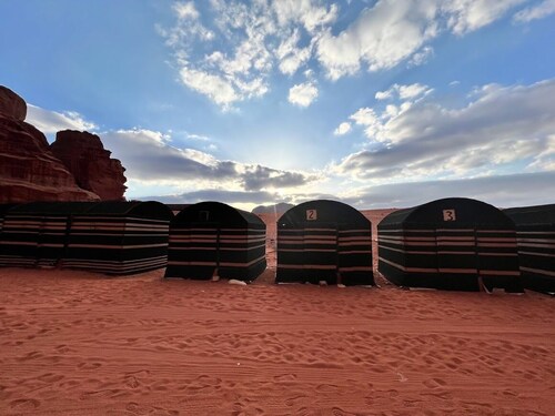 ワディ ラムにあるこのテンタロー (テントバンガロー)は、ワディ ラム保護区から 0.1 km、ハザリ渓谷およびLittle Bridgeから 5 km 圏内です。ロレンスの泉およびマッシュルーム ロックも 10 km 圏内です。 レストランのほか、このテンタロー (テントバンガロー)には24 時間対応フロントデスクおよびツアー / チケット案内があります。 朝食ビュッフェ (無料)およびセルフパーキング (無料)もご利用いただけます。その他の設備には、バーベキューグリルおよびセーフティボックス (フロントデスク)があります。
