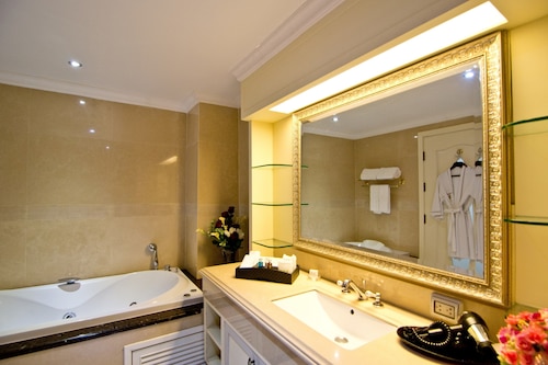 【Wi-Fi客室無料】 【全室禁煙】 パタヤビーチロード沿いにあり、ビーチフロントの絶好のロケーション。ホテルから徒歩圏内にたくさんの飲食店が軒を連ねています。ウタパオ国際空港から車で約40分。 ホテルに足を踏み入れると、中世ヨーロッパを彷彿させるロビーがお出迎え。屋外プールとサンデッキがあり、心地の良い時間をお過ごしいただけます。客室にはクラシカルな雰囲気の家具が備わっており、エレガントな雰囲気が漂っています。