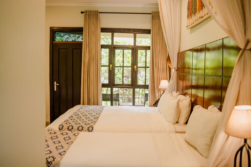 アルーシャにあるこのゲストハウスは、アルーシャ ゴルフ コースから 4.9 km、ンジロ コンプレックスから 4.9 km です。アルーシャ時計台およびマサイマーケットとキュリオスクラフトも 10 km 圏内です。 このゲストハウスには、屋外プール、レストラン、および2 か所のバー / ラウンジがあります。イングリッシュ ブレックファスト (無料)、共用エリアでの WiFi (無料)、およびバレーパーキング (無料)もご利用いただけます。その他に、敷地内にはプールサイドバー、スナックバー / デリ、および24 時間対応ビジネスセンターがあります。