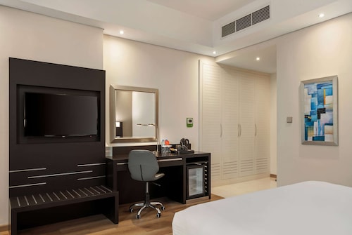 テコムに位置するこのスパ付きホテルは、ジュベル アリ競馬場から 1 km、エミレーツ モール (ショッピング)から 4.5 km です。エミレーツ ゴルフ クラブおよびドバイ大学も 5 km 圏内です。地下鉄 ドバイ インターネット シティ駅まで徒歩わずか 18 分です。 このホテルには、3 か所のレストラン、2 つの屋外プール、フルサービス スパが備わっています。共用エリアでの WiFi (無料)および セルフパーキング (無料)もご利用いただけます。その他に、敷地内にはフィットネスクラブ (スタッフ常駐)、スナックバー / デリ、およびスチームサウナがあります。 客室清掃はリクエストにより行われます。