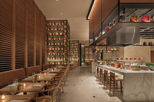 アル・バティンに位置するこの高級ホテルは、エティハド タワーズ、アル クベイラ ガーデン、アブダビ コーニッシュから 3 km 圏内です。オブザベーション デッキ アット 300およびコルニッシュ ビーチも 5 km 圏内です。 この禁煙のホテルには、3 か所のレストラン、2 つの屋外プール、およびフルサービス スパがあります。共用エリアでの WiFi (無料)および バレーパーキング (無料)もご利用いただけます。その他の設備には、2 か所のバー / ラウンジ、24 時間営業のフィットネス施設、およびプールサイドバーがあります。 客室清掃はリクエストにより行われます。