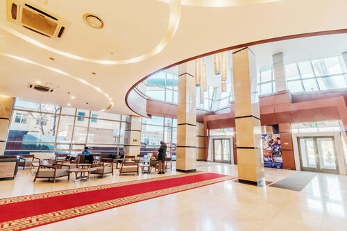その名の通り、ガラス張りの建物には、モンゴルの青空が映し出されています。宿泊する部屋も、一面に窓が大きく取られており、明るくてとても気持ちが良いです。国会議事堂を含むスフバートル広場の真ん前のロケーションですから、博物館へ行くにもショッピングへ行くにも、文句なしに便利です。