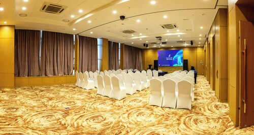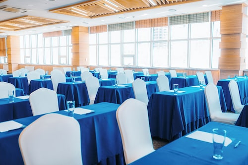 スフバートル広場の正面に、半月形の印象的な建物が、青い空から切り取られたようにすっくと立っています。これがホテルThe Blue Skyです。