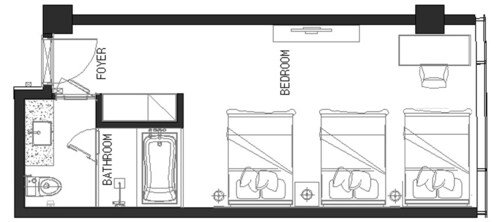各部屋にバスタブもちゃんと付いていますが、特筆すべきはこのホテルのアメニティ。すべての部屋のシャワージェル、シャンプー&コンディショナー、ボディローションがロキシタンなんです。ちょっぴり贅沢気分を味わえます。