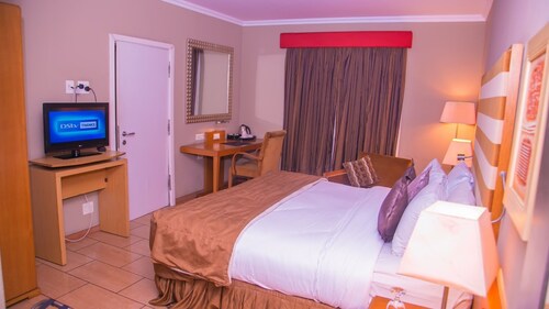 ポート ハーコート中心部に位置するこのホテルは、ポートハーコートモール、シャークス・スタジアム、インターコンチネンタル診断センターから 5 km 圏内です。アグリー ロードおよびリベレーション スタジアムも 10 km 圏内です。 屋外プール、レストラン、および24 時間営業のフィットネス施設があるホテルです。コンチネンタル ブレックファスト (無料)、共用エリアでの WiFi (無料)、およびセルフパーキング (無料)もご利用いただけます。その他の設備には、バー / ラウンジ、24 時間対応のルームサービス、およびビジネスセンターがあります。