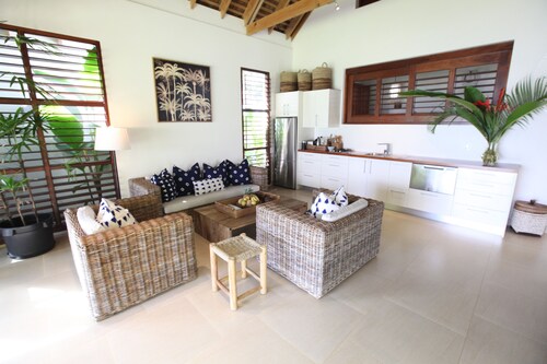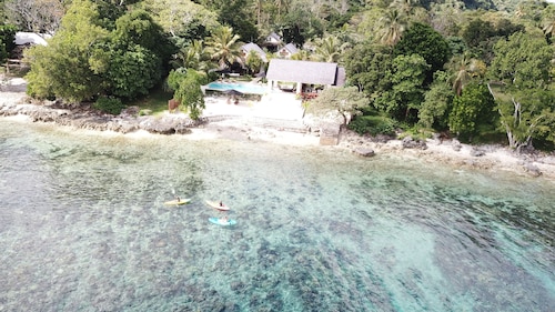 ビーチに直接アクセスできる、ポートビラに位置するこのヴィラは、パンゴ ポイントから 2.1 km、エラコールagoonおよびIndependence Parkから 10 km 圏内です。フェイアワパークおよびイリリキ島も 10 km 圏内です。 このヴィラでは、屋外プールでリラックスしたり、シュノーケリングを楽しめる白砂のプライベートビーチに出かけたりしてお過ごしください。 ヴィラには、ベッドルーム 2 室、WiFi (無料)、iPod ドックが備わっています。キッチンには、冷蔵庫、コンロ、電子レンジ、食器洗い機が備わっています。