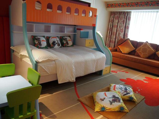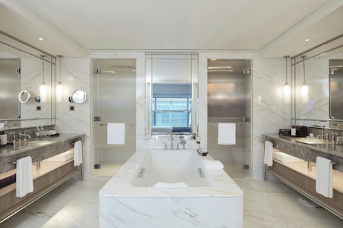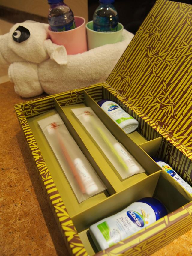 客室のインテリアは清潔感のあるシンプルなものとなっている。最もスタンダードなデラックスルームでも広さは42平米とゆったり。バスルームはバスタブと独立型シャワーブースの組み合わせ。客室からはコタイ地区のIR施設群を見渡すことができる。インターネット接続は有線LANとWi-Fiがあり、いずれも有料となる。