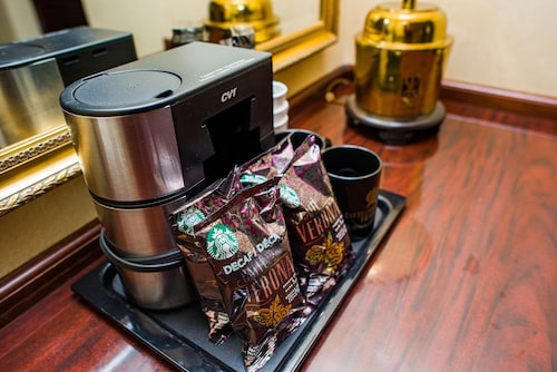 インテリアは伝統的なヨーロピアンスタイルで、高い天井からはクリスタルのシャンデリアがさがり、窓にはステンドグラス。ロビーには格式があるアンティーク家具がさりげなく配置されています。