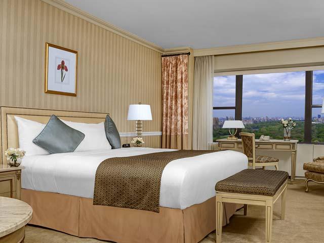 ニューヨークのアイコン、セントラルパークの南側に立つクラシックなラグジュアリーホテルです。46階建てで、南側の部屋からはニューヨークのビル群が見えますが、宿泊するならやはりセントラルパーク側の部屋「パークビュー」をおすすめします。大きめの窓から眺めるセントラルパークに感動すること間違いなし!宿泊だけでなく、アメリカン・ブレックファーストが楽しめる朝食付きのパッケージや、ホテルが契約している駐車場(バレットパーキング)が利用できるパッケージなどもあります。5番街まで1ブロックで、プラザホテル、アップルストアー、FAOシュワルツなどは徒歩3分程、カーネギーホールや、コロンバスサークルも徒歩10分以内と、安全・便利な立地条件です。また、ホテル2階にあるレストラン「パークルーム・レストラン」は、大きな窓から見えるセントラルパークが大人気。天井も高く開放感に溢れ、サーバーも親切。バーラウンジ「ハリーズ・ニューヨーク」もあり、レストラン、バー共に宿泊客以外でも利用できます。加えて犬も一緒に泊まれる(別料金)という、ペットフレンドリーな高級ホテルです。