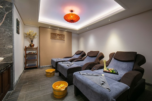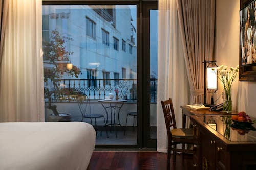 オールド クォーターに位置するこのスパ付きホテルは、タンロン水上人形劇場およびホアンキエム湖から徒歩 5 分圏内です。クアンチュオン門およびドンスアン市場も 10 分圏内です。ロン ビエン駅まで徒歩 14 分、ハノイ駅まで徒歩 21 分です。 フルサービス スパ、レストラン、およびバー / ラウンジがあるホテルです。共用エリアでの WiFiは無料です。 その他の設備には、スナックバー / デリ、スパサービス、およびコンシェルジュ サービスがあります。 タオル交換はリクエストにより行われます。